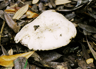I admit this is not a very flattering photograph for a mushroom that many people consider to represent the essential edible mushroom, the champignon of France, the wild mushroom that most resembles our store-bought button mushroom (Agaricus bisporus.) The common field mushroom, A. campestris tastes very much like the commercially grown button mushrooms, only more concentrated and deeper in complexity. Perhaps its flavor more closely resembles the large brown variety of A. bisporus sold as portobello mushrooms in California supermarkets. The mature A. campestris has brown gills, the buttons have pink gills. It does not stain yellow nor smell phenolic like A. Californicus or A. xanthodermis, nor does it have the sweet almond smell of A. arvensis. Like A. arvensis, it has a pure white cap which may turn pale tan in age (like the one pictured above). The flesh of older specimens may discolor slightly brown or reddish brown, and the smell is mild and . . . well, mushroomy. Older specimens may have some maggots, but usually not as many as some other agarics. As with other wild mushrooms, campestris usually have more moisture and softer flesh than their commercially grown cousins, but they compensate with an exceptionally rich flavor. An impeccably delicious mushroom.