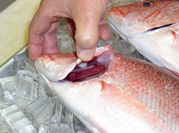 Chef's Shopping Lessons I asked James Pei, chef-owner of Cafe Yulong, to share some tips on shopping for fresh crab and fish. This second installment highlights fresh fish. We visited three different Asian markets together, where Pei contrasted the features of the fresh catch against older specimens. All of the markets had extensive seafood counters with live tanks full of crustaceans and freshwater fish, and rows of whole fish on ice. The Mountain View Market (340 Castro St., Mtn. View) had some of the freshest catch on that particular day, but the live tanks needed cleaning. When I returned a few days later, the tanks were cleaner. The New Wing Yuan Market (1139 Lawrence Expressway, Sunnyvale), whose owners used to run the New Castro Market, had a bright scrubbed environment. The fish were well iced, at medium freshness. Ranch 99 Market (Milpitas Square Center, Barber Road, Milpitas) had the largest selection of all, with clean live tanks. On many days, Pei says it's the best place to go for fresh caught fish on ice, but we visited on a day between shipments so the quality varied. Pei says the best markets are the busiest, so they cycle through their inventory quickly. However, even the best markets sometimes get poor shipments. Sometimes you'll see a few beautiful fish caught yesterday, lined up next to several from last week. Stay flexible, and buy what looks freshest. Signs of Freshness