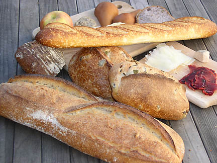 Baking Back Home Ironically, Acme's production manager admitted that he doesn't bake bread at home. He told me, "We [at Acme] bake the bread that we want to eat ourselves." So why make second-best? I still try to recreate the classic local sourdough, perhaps just for bragging rights. I try to emulate the high humidity and thermal mass of a European bread oven. A pizza stone helps stabilize the temperature, and a tray of boiling water keeps the humidity high. Indeed, great bread is alchemy, a dance of many variables. Happily, Acme's bread comes closer to the bread of my memory than anything I can bake at home. I think it comes closer to classic "San Francisco Sourdough" than many of the breads that claim that heritage. You can find Acme bread at Mountain View and Sunnyvale Farmers' Markets on weekends, and Costco, The Milk Pail, Andronico's, Dreager's, Whole Foods and other fine markets during the rest of the week.