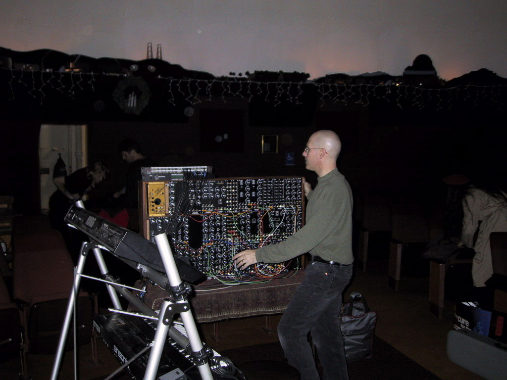 Photos from the Robert Rich concert at Morrison Planetarium in Golden Gate Park, San Francisco, California on Sunday December 9, 2001. More photos on the dub-beautiful website, under archives:photos:alien zoology. Morrison Planetarium was scheduled for demolition in 2002, but demolition was delayed until September 2003, allowing for one more concert, performed there in May 2003.